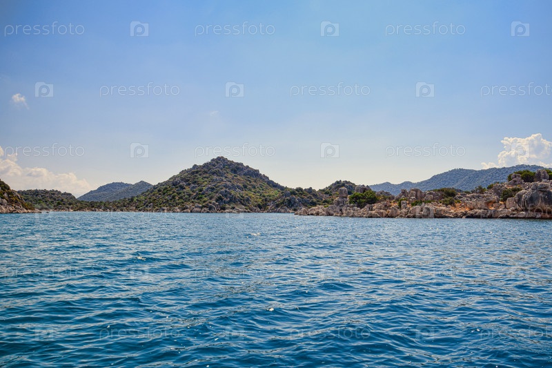 Каменистый берег Средиземного моря на горизонте