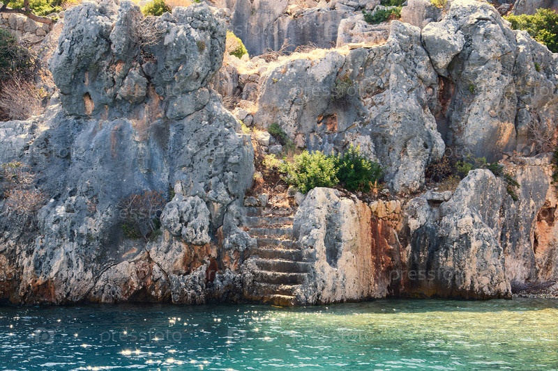 Древняя каменная лестница, спускающаяся к лазурным водам Кекова