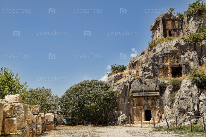 Руины древнего города и ликийские гробницы