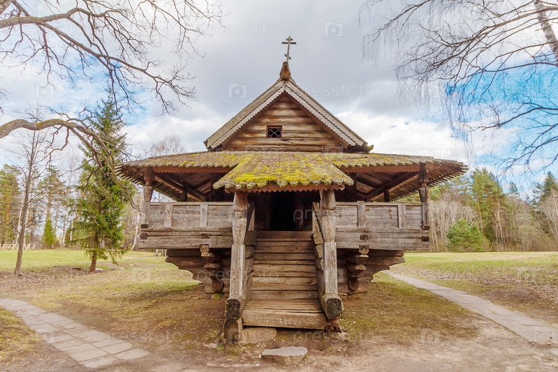 Старинная деревянная часовня Архангела Михаила. Архитектурно-этнографический музей Василево, Торжокский район, Тверская область. Достопримечательность России