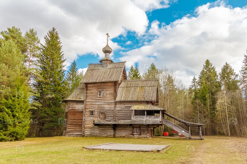 Старинная деревянная Преображенская церковь. Архитектурно-этнографический музей Васильево, Торжокский район, Тверская область. Достопримечательность России