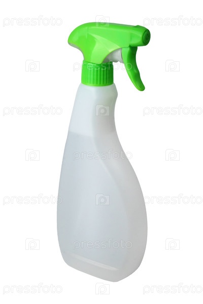 Распылитель с зелеными акцентами, изолированный на белом. Идеально подходит для чистящих средств, садоводства