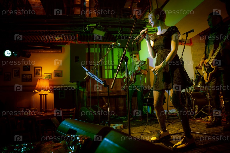 Группа выступает на сцене, рок-концерт в ночном клубе