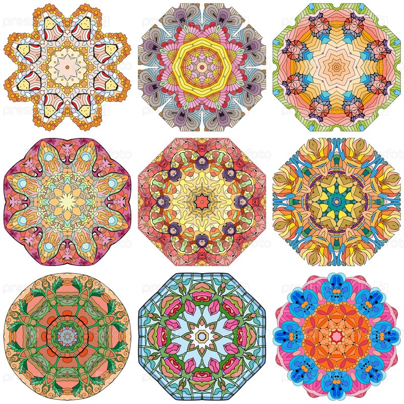 Декоративные круглые орнаменты. Необычная форма цветка. Восточный вектор, Узоры антистрессовой терапии. Элементы дизайна плетения. Вектор логотипов йоги