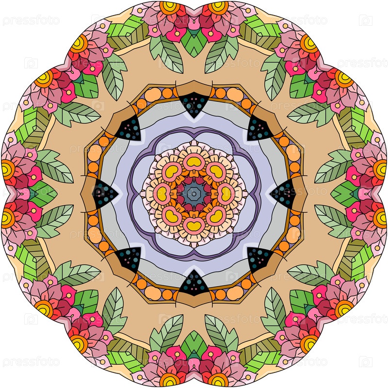 Декоративные круглые орнаменты. Необычная форма цветка. Восточный вектор, Узоры антистрессовой терапии. Элементы дизайна плетения. Вектор логотипов йоги