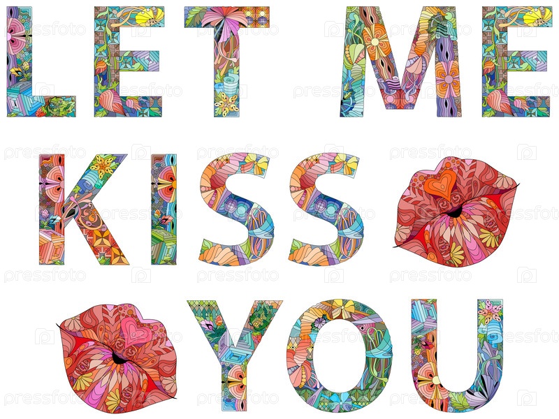 Позволь мне поцеловать тебя. Векторный декоративный зентангл-объект для украшения
