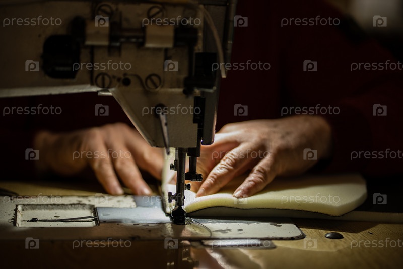 Швейная машинка и мужские руки портного