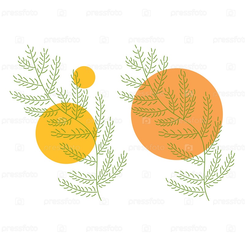 Зеленый лист на круглом фоне. Ботаническая иллюстрация на белом фоне