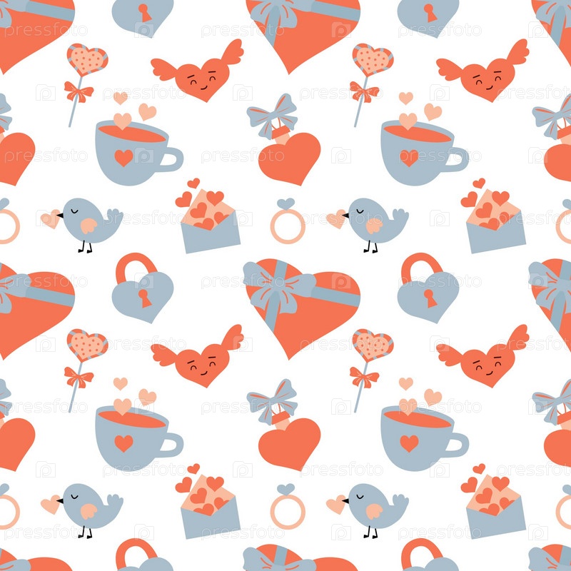 День святого Валентина бесшовный узор. Набор картинок любовь, свадьба