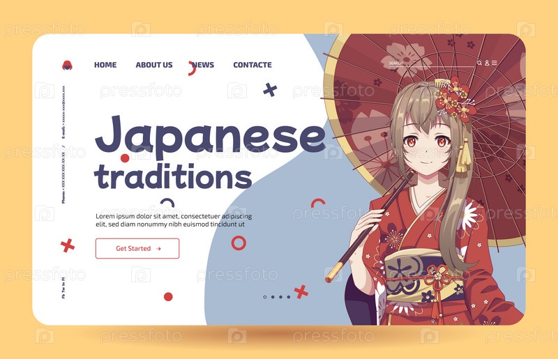 Аниме манга девушки в традиционном японском костюме кимоно держат зонтик. Изучайте японский язык - Шаблон целевой страницы