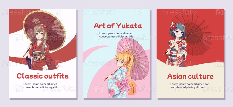 Плакат-флаер аниме манга девушки в кимоно держат зонтик