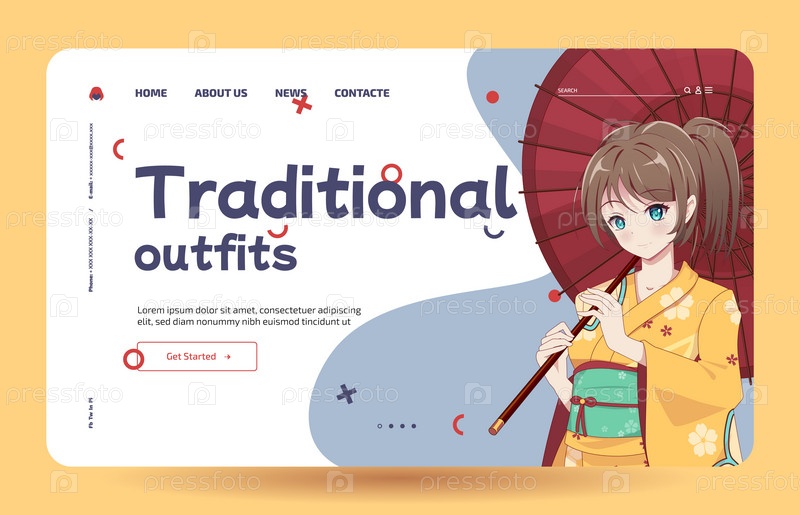 Шаблон целевой страницы. Аниме девушка в кимоно и с зонтиком