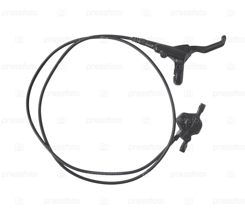 Гидравлический дисковый тормоз горного велосипеда, изолированный на белом фоне