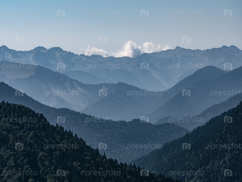 Слоистые горы в солнечный день. Синий градиентный фон
