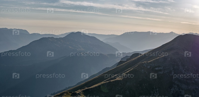 Панорамный вид на горный хребет на закате