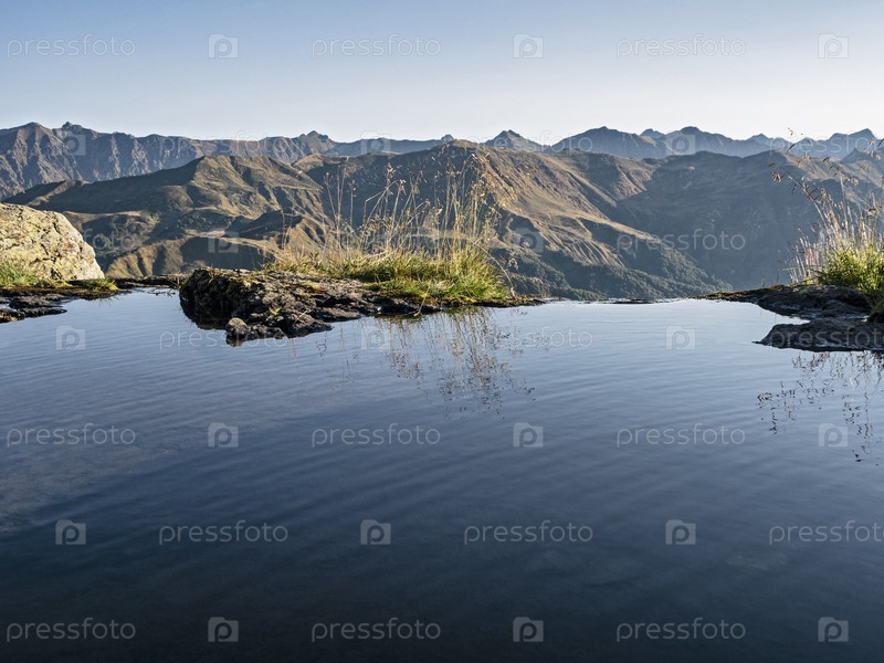 Спокойная водная гладь озера на фоне гор