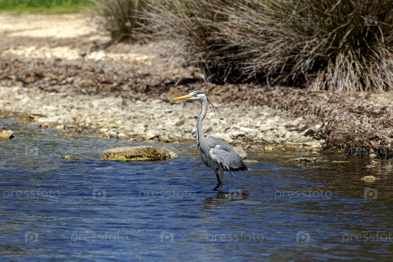Большая серая цапля (Ardea cinerea) крупным планом (Греция, остров Кефалония)