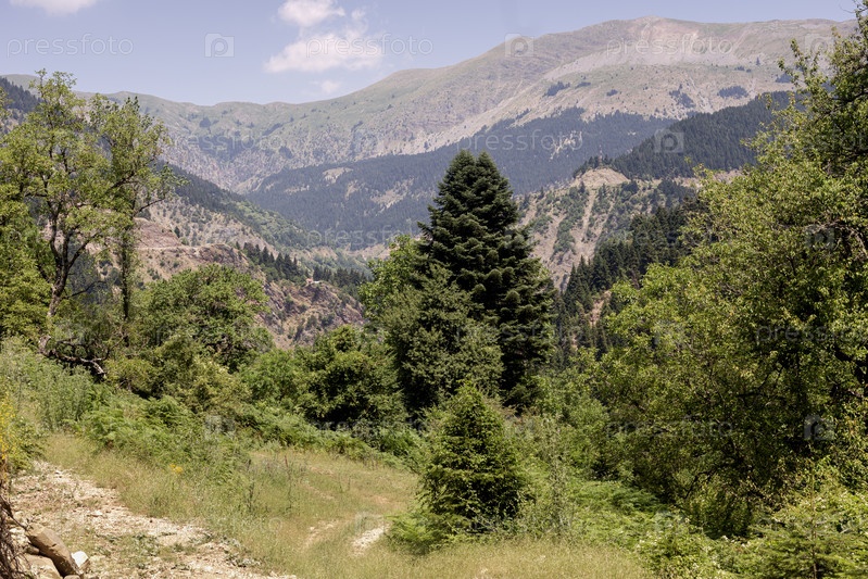 Горы южного Пиндоса (Греция) в летний солнечный день