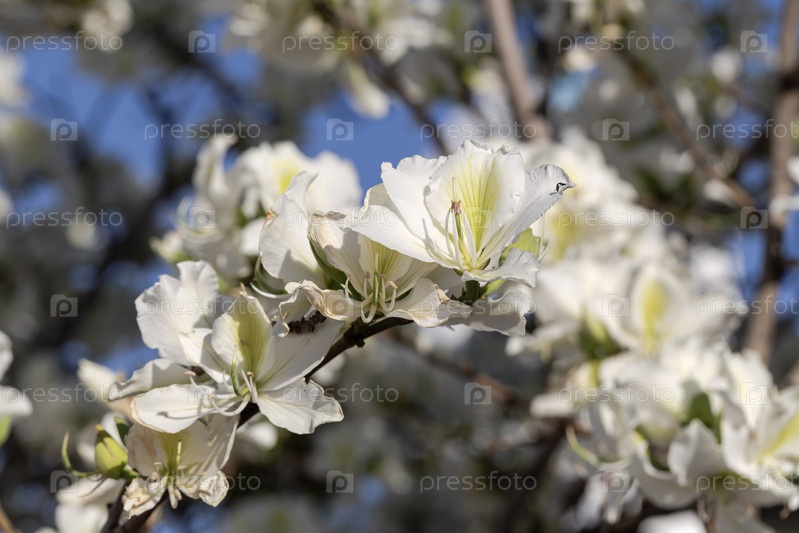 Красивое дерево (Bauhinia VARIEGATA 'CANDIDA') с белыми цветами крупным планом