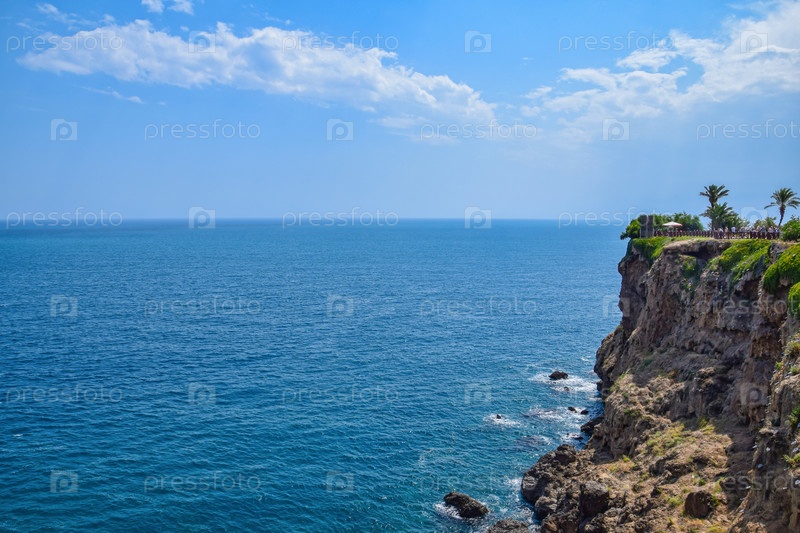 Высокий утес, омываемый лазурными волнами Средиземного моря
