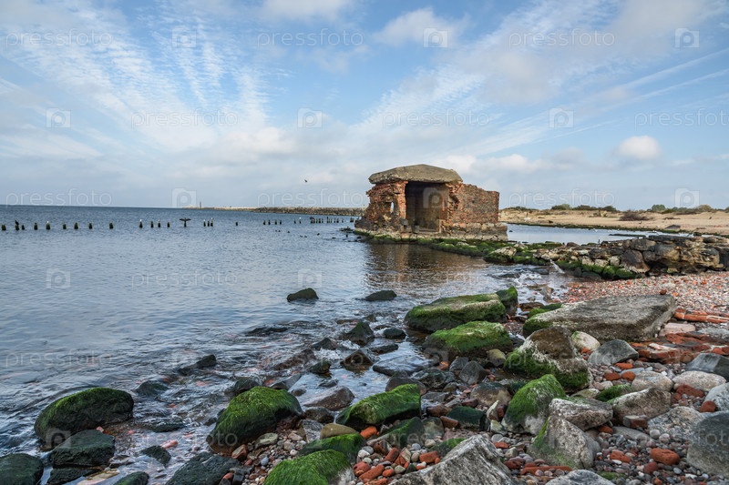 Руины Западного форта на побережье Балтийского моря, Вислинская коса. Балтийск. Россия