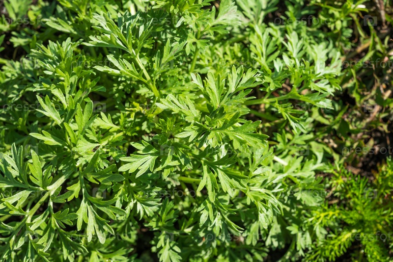 Кустарник полыни горькой, Artemisia absinthium на открытом воздухе. Применение лекарственных растений в медицине