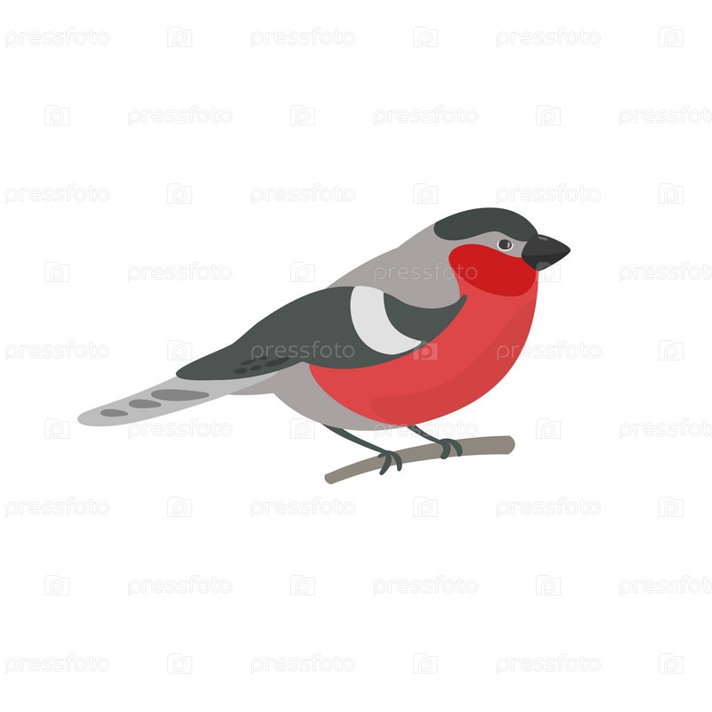 Снегирь сидит на ветке дерева. Нарисованная вручную птица