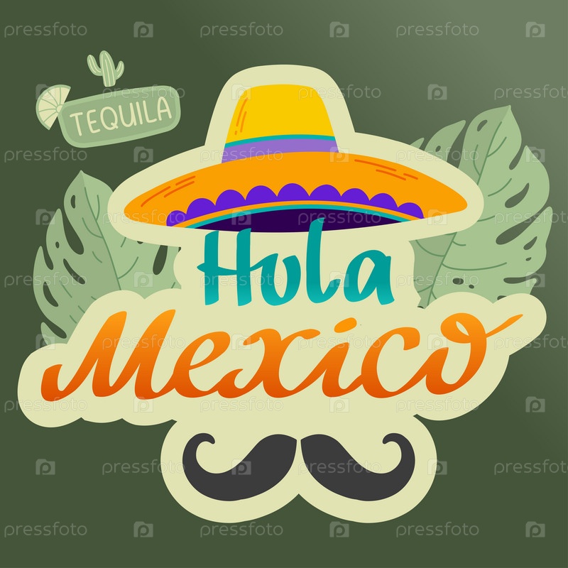 Дизайн логотипа с иконкой мексиканской шляпы Hola Mexico