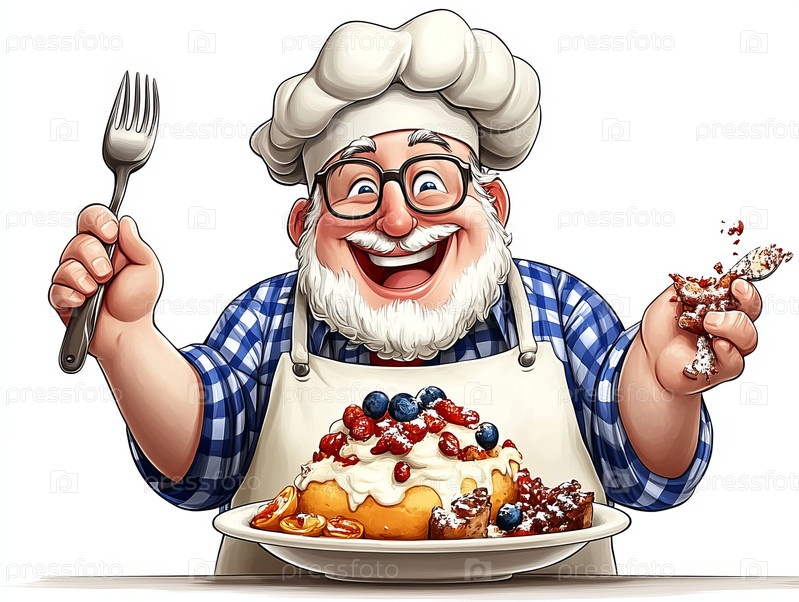 Шеф-повар радуется своей кулинарной работе с ярким десертом из фруктов и крема