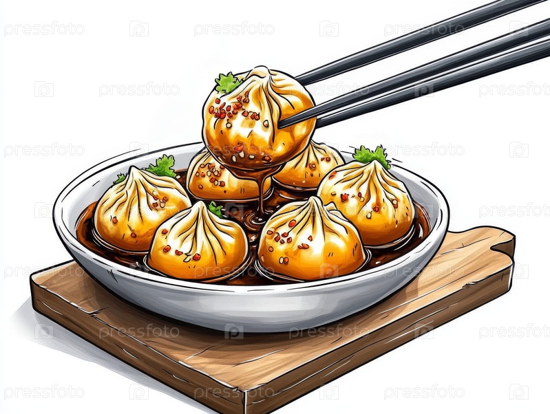На деревянной доске пара палочек поднимает сочный димсам с золотистой приправой на расслабляющем обеде