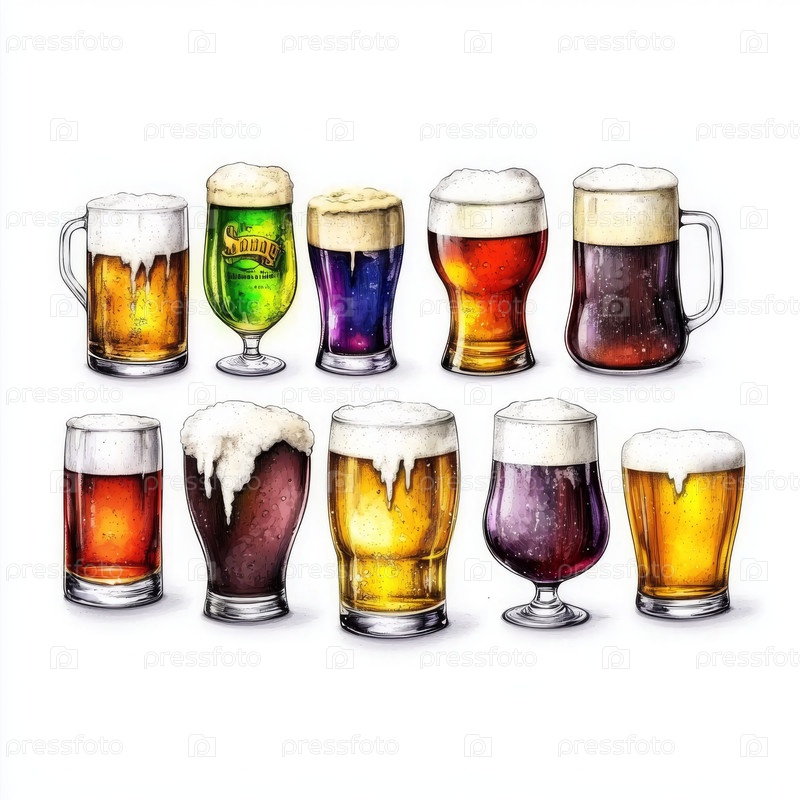 Коллекция свежих пенных напитков в различных стилях и оттенках для веселой компании