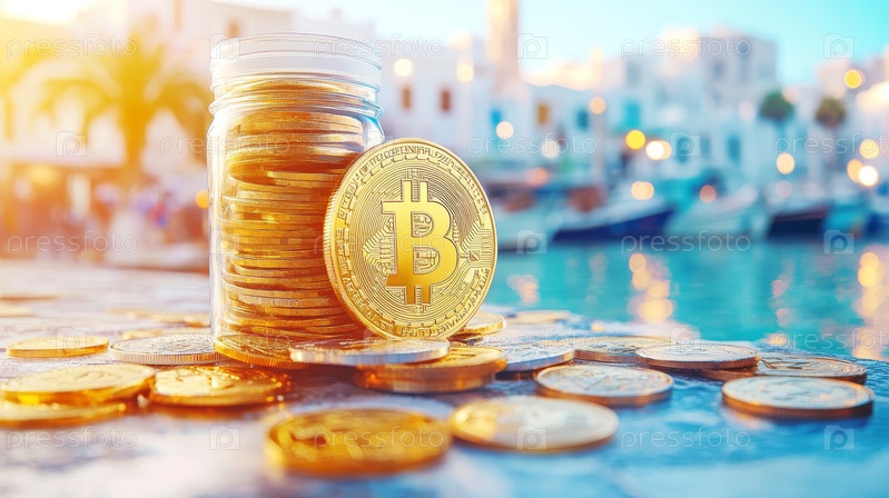 Солнечная тропа к биткойну на живописном побережье