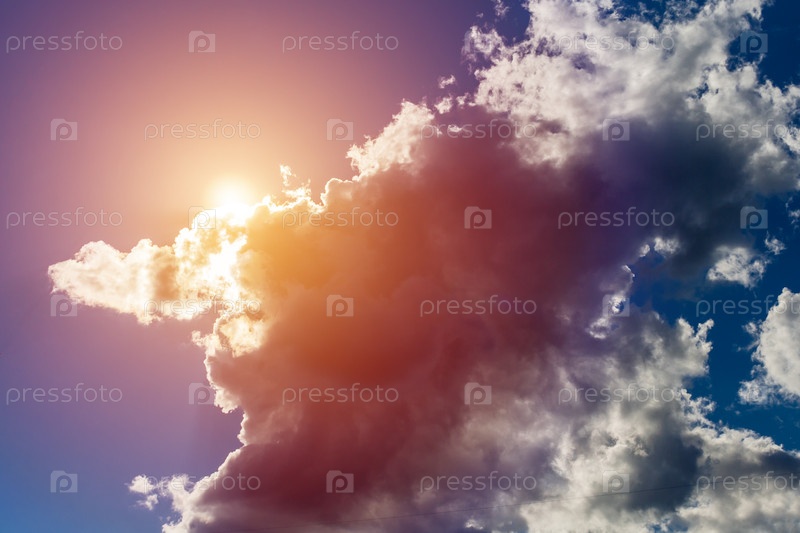 Облака, освещенные солнцем на фоне голубого неба (фон, тонированный)