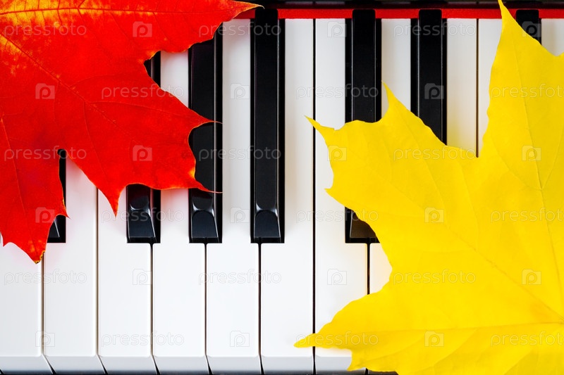 Крупный план осенних листьев на клавишах пианино (фон, концепция)
