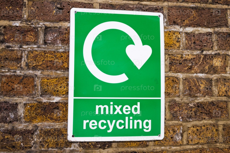 Знак смешанной переработки на кирпичной стене, пропагандирующий ответственную утилизацию и экологически чистую сортировку отходов