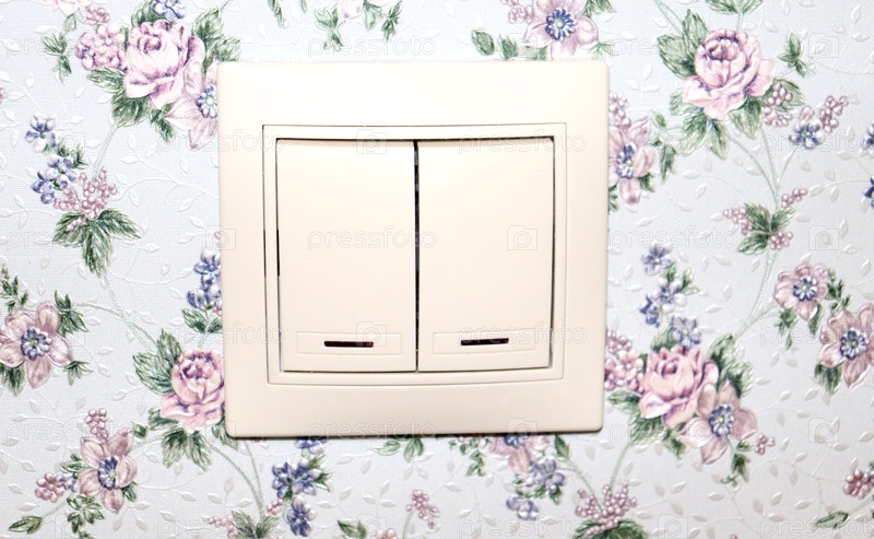 Выключатель на стене комнаты в доме, обои в стиле прованс