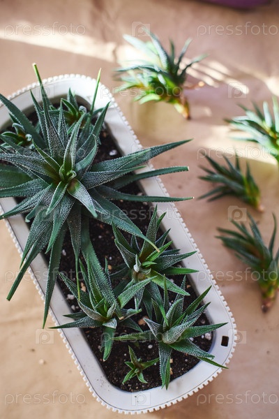 Весенняя пересадка комнатных цветов. Пересадка растения Haworthiopsis Haworthia Fasciata или Zebra Aloe, отделение новых побегов