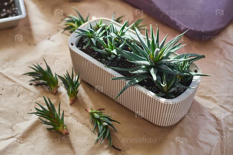 Весенняя пересадка комнатных цветов. Пересадка растения Haworthiopsis Haworthia Fasciata или Zebra Aloe, отделение новых побегов