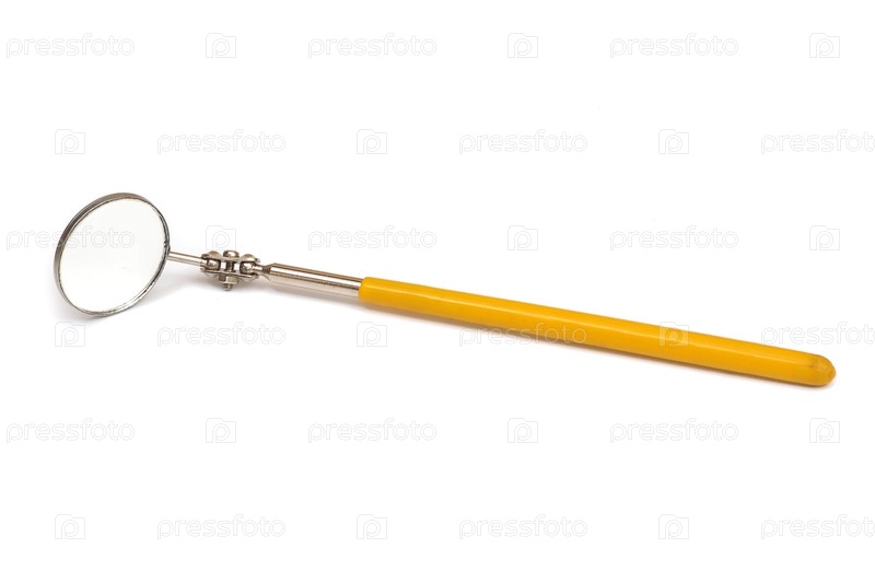 Техническое зеркало с ручкой, изолированное на белом фоне