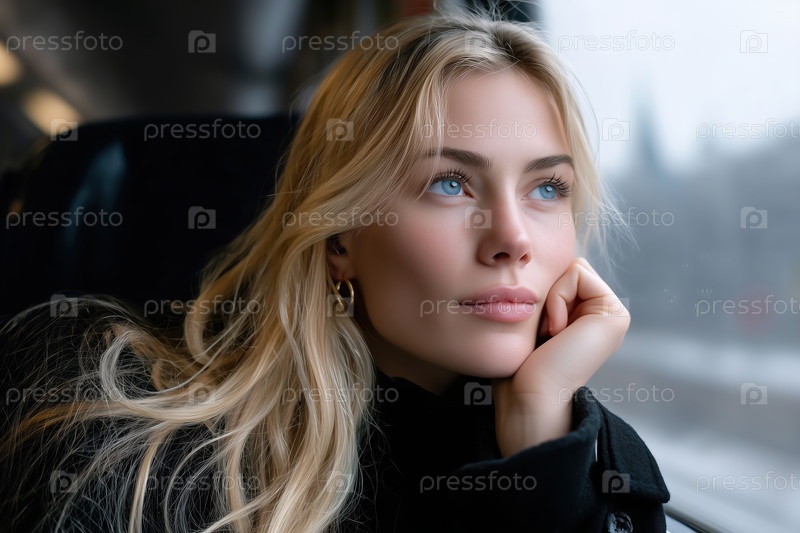 Портрет красивой девушки с голубыми глазами в поезде