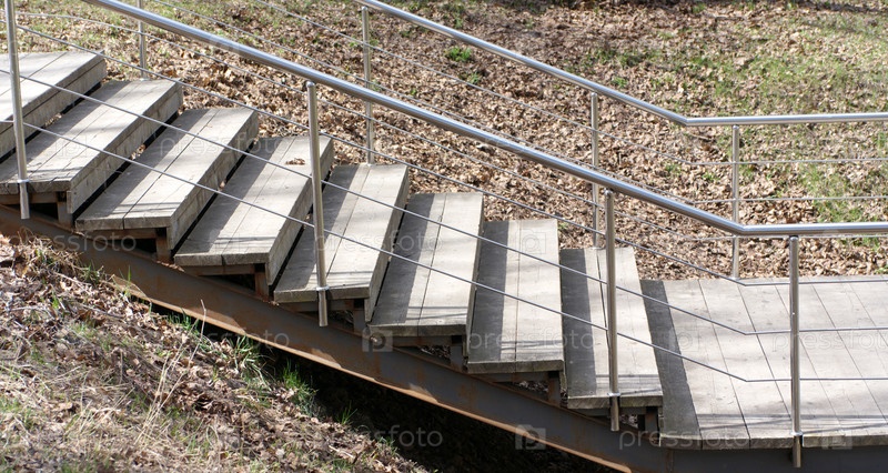 Деревянные лестницы в парке в сухой солнечный летний день