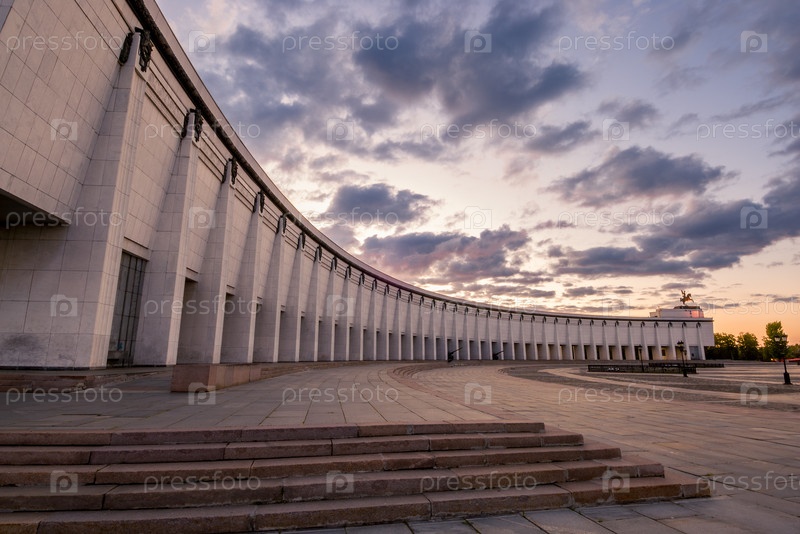 Вечерний вид на Музей Победы на Поклонной горе в Москве. Россия