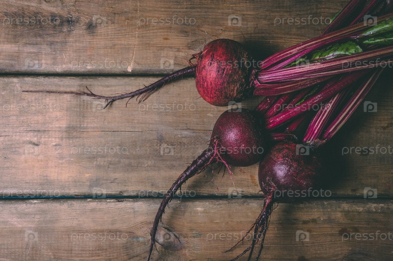 Пучок свежей свеклы на деревянном деревенском столе. Копировать пространство. Здоровая еда. Сырые овощи