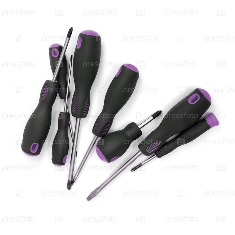 Ручной инструмент для ремонта и установки: Набор отверток, изолированный на белом фоне