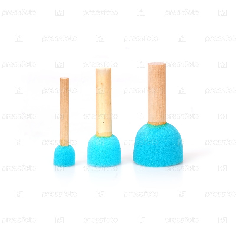 Синие губки на деревянных ручках, изолированные на белом фоне