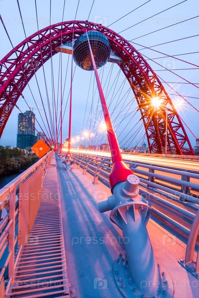 Живописный вантовый мост через Москву-реку. Москва. Россия