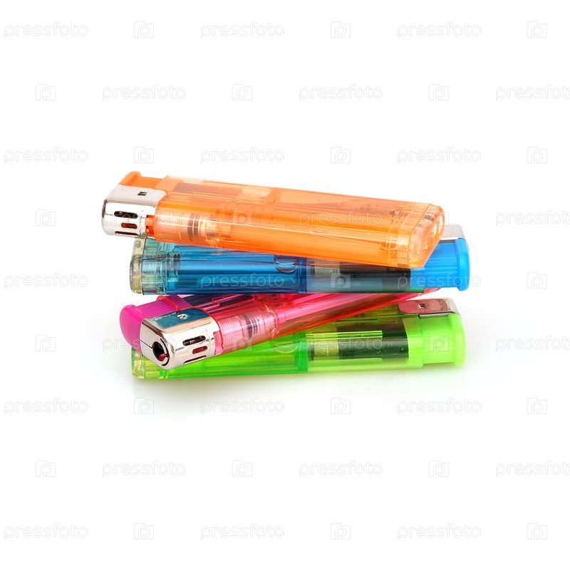 Газовые зажигалки, изолированные на белом фоне