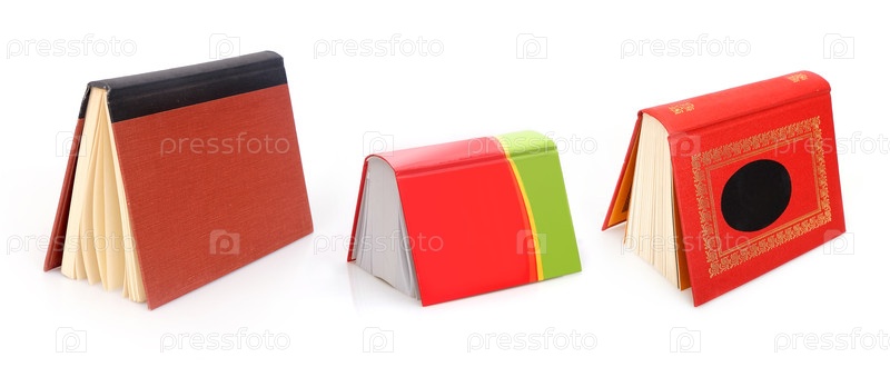 Книга в цветной обложке с белыми листами, изолированными на белом фоне