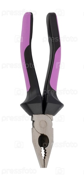 Изолированные ручные инструменты для ремонта и монтажа: плоскогубцы (композиция на белом фоне). Элемент дизайна с обтравочным контуром