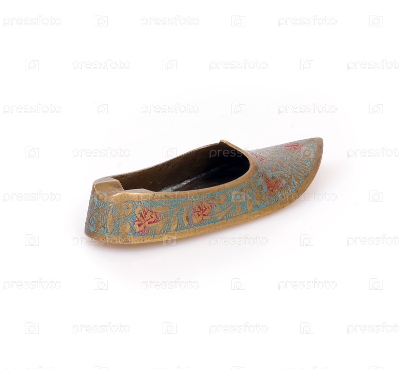 Восточная бронзовая пепельница с арабским орнаментом, изолированная на белом фоне